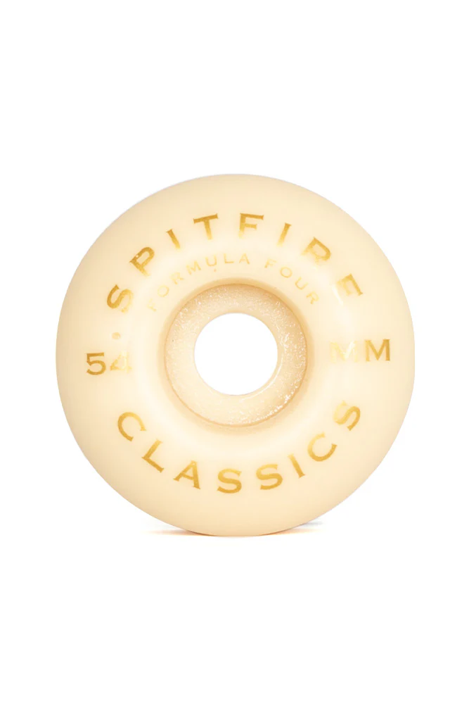 Dominate every spot with the Spitfire Formula Four Classics Wheels. Featuring the original Classic shape with a medium riding surface and rounded edges, the Classics offer the perfect balance of speed, control, and smooth slides. Built with Formula Four Urethane, these wheels deliver unmatched durability, flatspot resistance, and consistent performance. Ideal for all-around street skating, transition skating, and handling rough surfaces with ease.